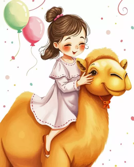 Adorable Girl With Camel Diamond Painting