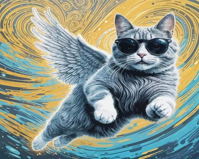 Angel Cat Wearing Black Sunglasses Diamond Painting
