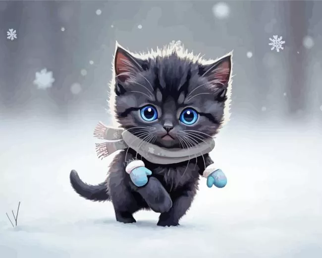 Baby Black Cat In Snow Diamond Painting