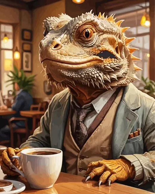 Bearded Dragon Drinking Coffee Diamond Painting Art Benefits :