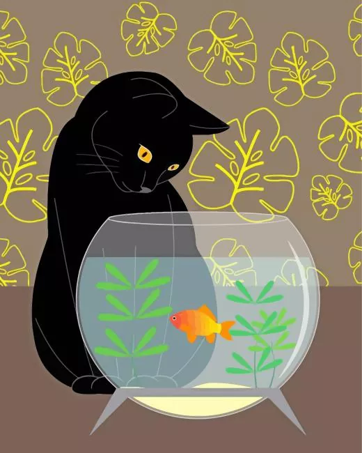 Black Cat And Goldfish Art Diamond Painting