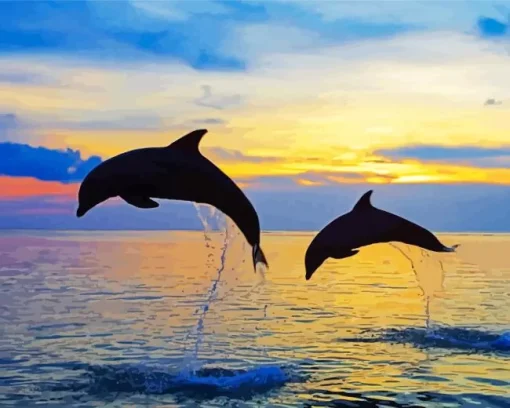 Bottlenose Dolphins Silhouette Diamond Painting