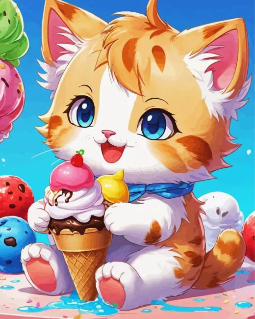 Cartoon Cat Eating Ice Cream Diamond Painting