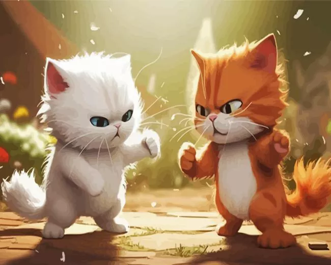 Cartoon Cats Fighting Diamond Painting