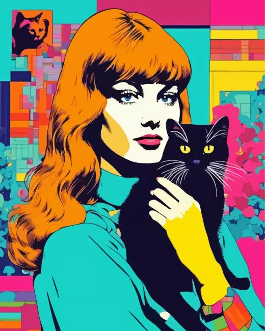 Cat And Girl Pop Art Diamond Painting
