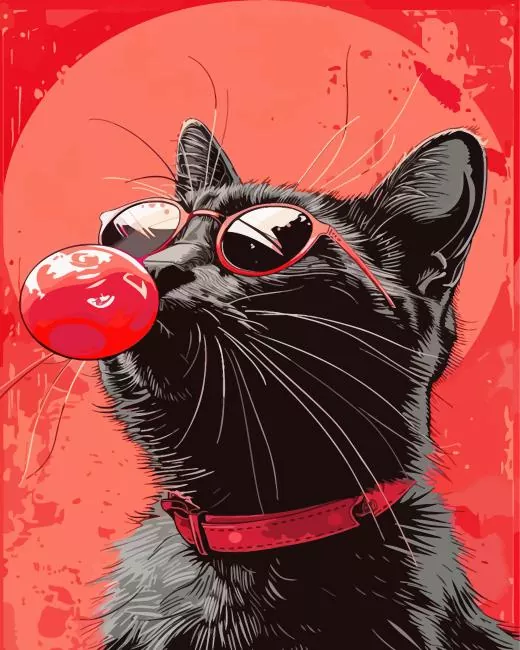 Cat Blowing Bubble Gum Diamond Painting