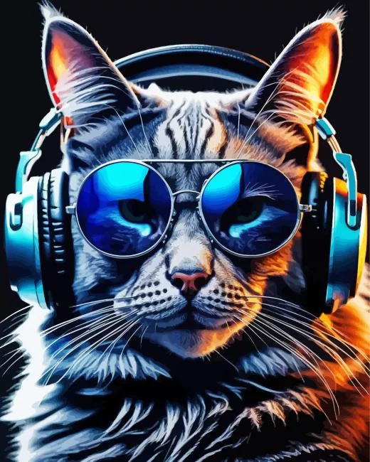 Cat Wearing Headphones And Sunglasses Diamond Painting