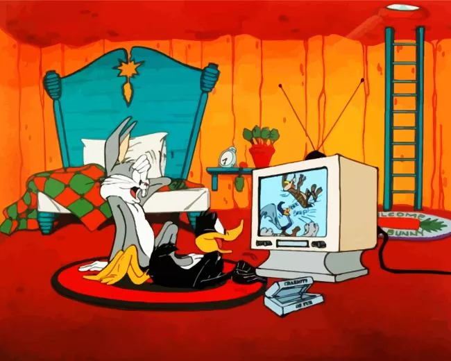 Daffy Duck And Bugs Bunny Watching Tv Diamond Painting