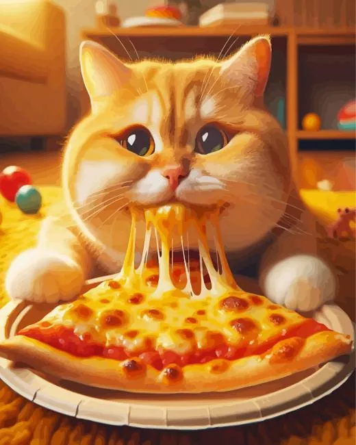 Fat Cat Eating Pizza Diamond Painting