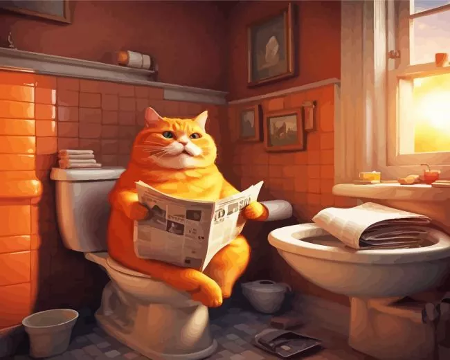 Ginger Cat Reading Newspaper Diamond Painting