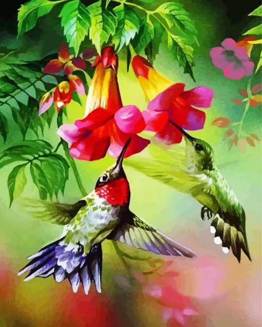 Hummingbird and Flowers Diamond Painting