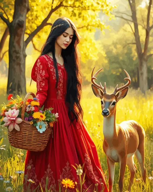 Lady With Deer Diamond Painting