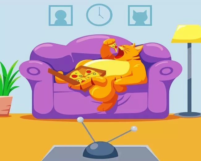 Orange Cartoon Cat Eating Pizza Diamond Painting