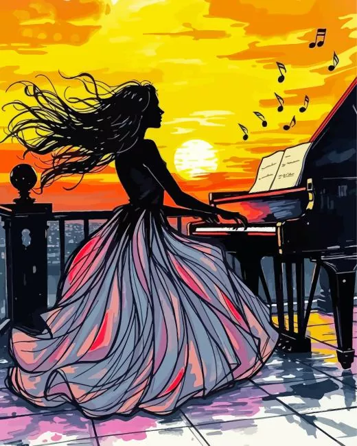 Silhouette Woman Playing Piano Art Diamond Painting
