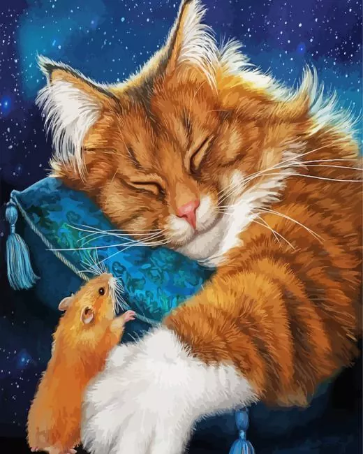 Sleepy Cat And Mouse Art Diamond Painting