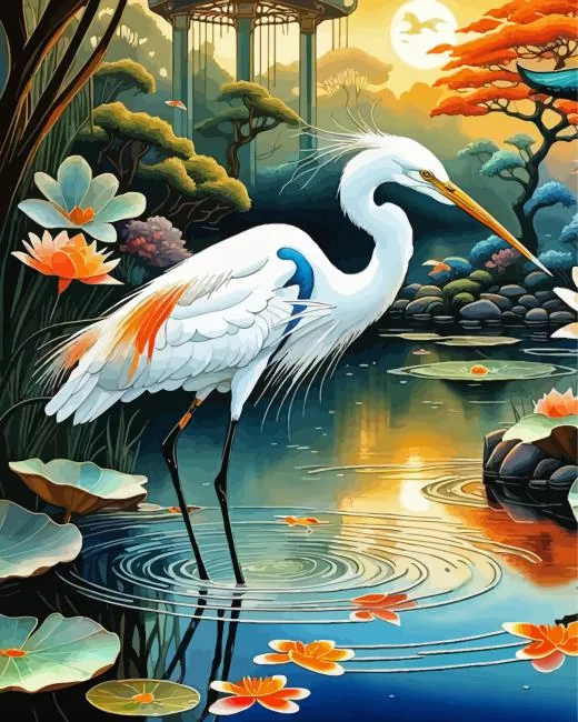 White Egret Diamond Painting